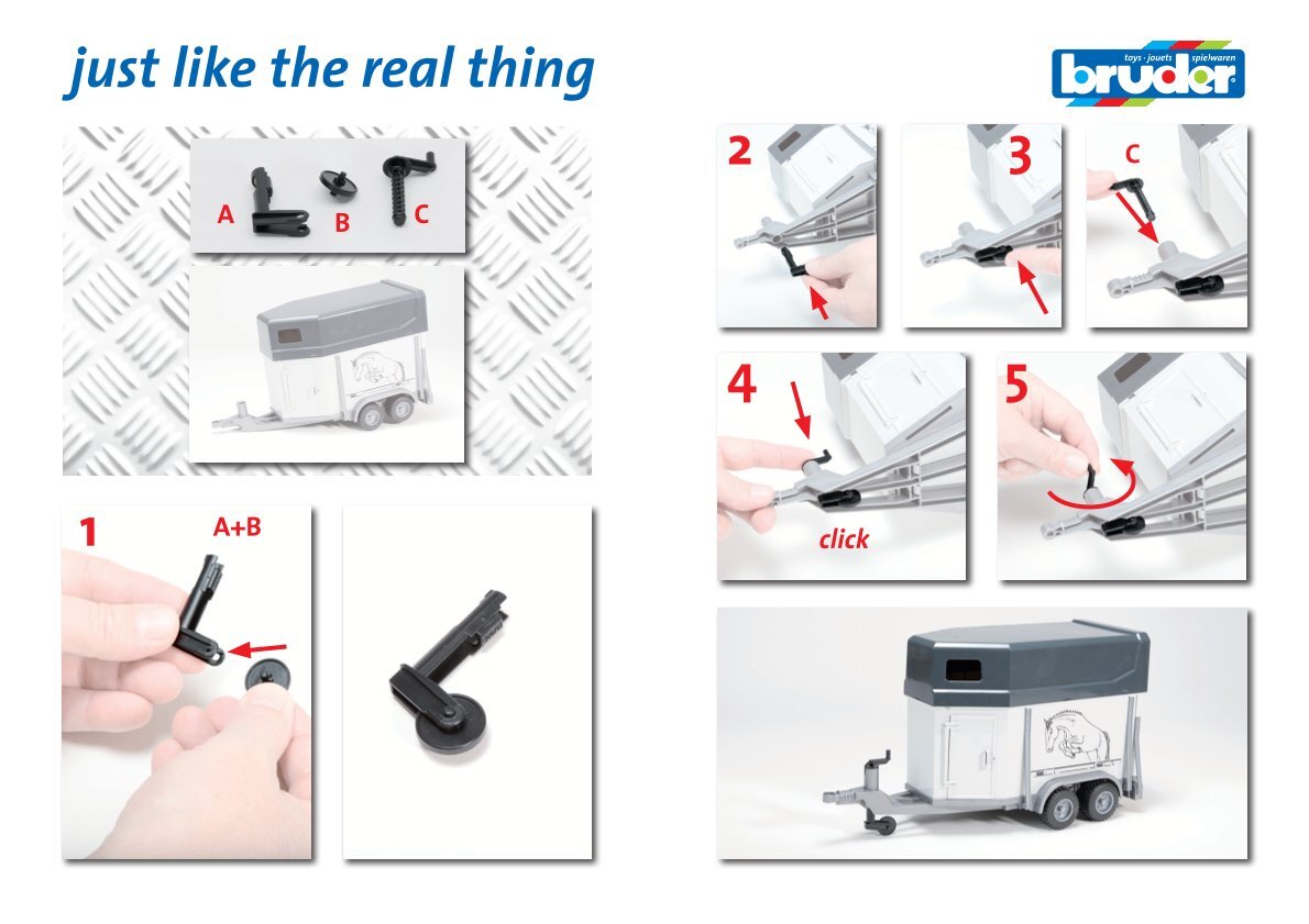 Dankzij de eenvoudige installatie kunnen beschadigde of versleten onderdelen snel worden vervangen, zodat je Bruder aanhanger altijd klaar is voor je volgende speelavontuur of werkopdracht. Deze kit is volledig compatibel met geselecteerde Bruder-aanhangermodellen en zorgt voor naadloze integratie en goede functionaliteit.
