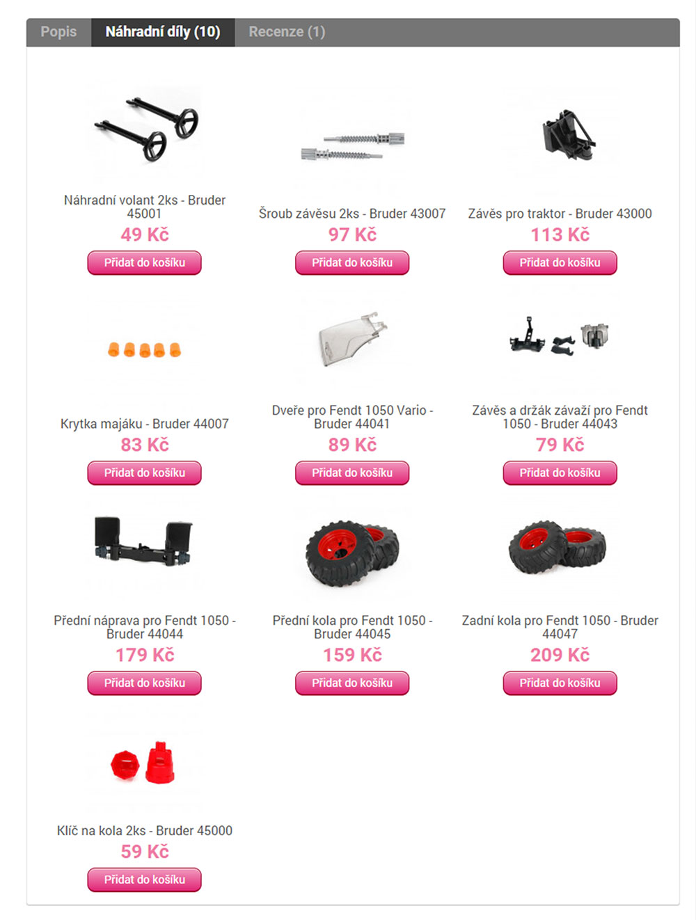 Klik gewoon op de productdetails en selecteer het tabblad reserveonderdelen. Je ziet dan alle onderdelen die beschikbaar zijn voor een specifiek model.