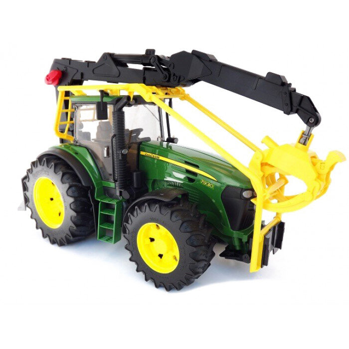 De Bruder John Deere 7930 is een perfecte kopie van de beroemde bosbouwtractor en dankzij zijn nauwkeurige afwerking zal hij elke jongen urenlang plezier bezorgen. Deze tractor is geproduceerd in de schaal 1:16 en beschikt over een roterende arm met de nodige grijper , een beschermframe en een in hoogte verstelbare trekinrichting. Ook de openslaande deuren en de cabine, die is beglaasd met zeer resistent polycarbonaat, zullen u bevallen. Het schuifdak en het verlengde stuur, dat ook deel uitmaakt van het pakket, helpen u de tractor te besturen. Voor nog meer speelplezier kunnen er andere Bruder- accessoires aan de tractor worden bevestigd, waaronder figuren uit de Bworld-editie .