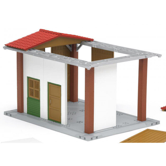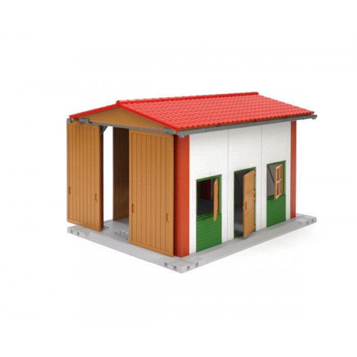 Voor iedere enthousiaste verzamelaar van Bruder-modellen mag een garage voor werkende machines zeker niet ontbreken. Deze garage is geschikt voor het huisvesten van modellen tot 24 cm hoog en kan na het verwijderen van de zijwanden ook als schuur functioneren. Het gehele gebouw kan eenvoudig worden gemonteerd of gedemonteerd, het is compatibel met hekwerken en andere gebouwen uit de Bworld-editie.