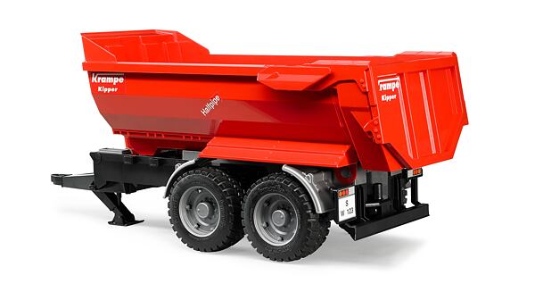 De rode Krampe kipper is een prachtige aanvulling op de Bruder modellen, hij is compatibel met alle tractoren uit de Profi serie. De auto heeft een inklapbare steunpoot en een verstelbare carrosserie met een te openen achterwand.