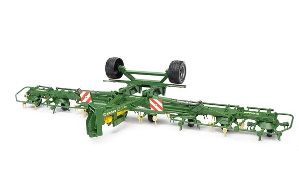 De hooikantelaar is een praktische en leuke toevoeging aan de Bruder Profi-tractoren. Het model heeft opklapbare armen, de individuele draaiers bewegen tijdens het rijden.