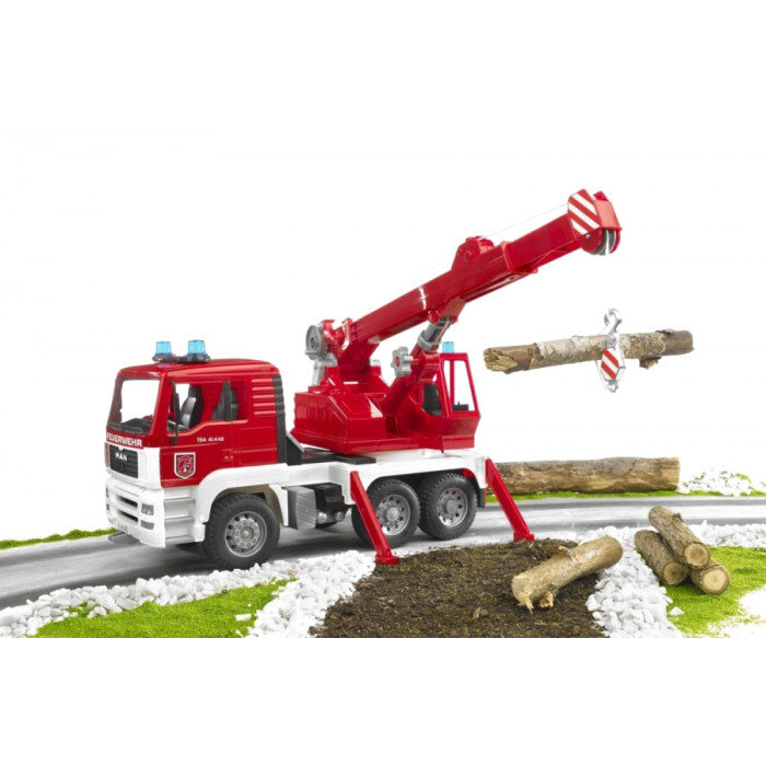 Een echte brandweerwagen mag bij geen enkel jongensspeeltoestel ontbreken! Dit maakt, net als andere Bruder-modellen, indruk met zijn nauwkeurige afwerking en leuke functies waardoor elke kleine brandweerman er verliefd op zal worden. Het model is een perfecte replica van de originele MAN-brandweerwagen en mist niet veel echte elementen, zoals een uitschuifbare arm, een volledig functioneel wikkeltouw met haak of een roterende kraan . Maximale stabiliteit van de auto wordt geboden door uitschuifbare steunpoten.