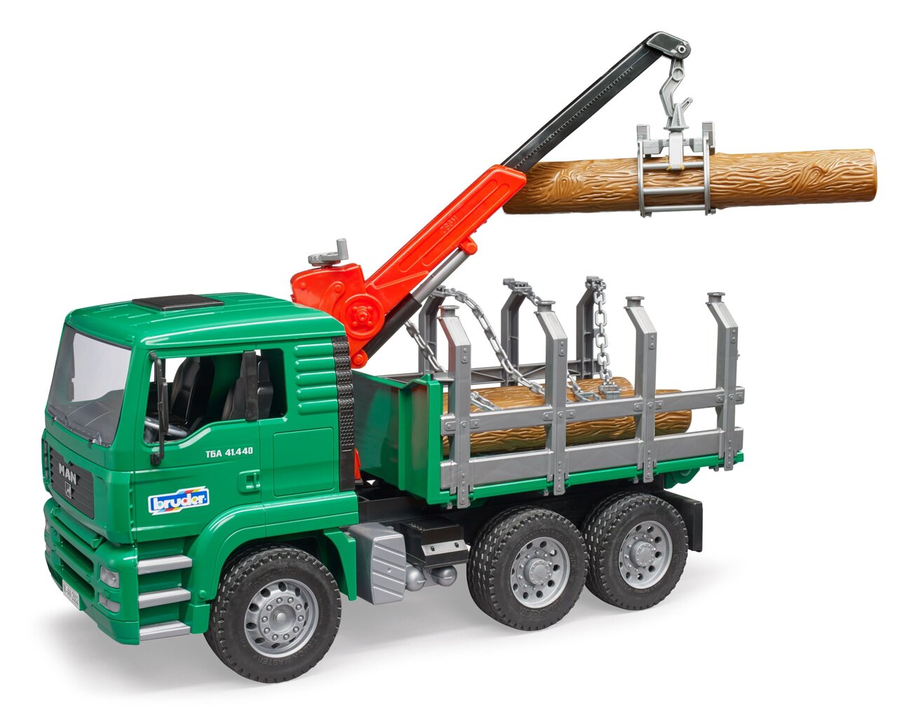 De MAN TGA-truck, ontworpen voor het transport van hout, zal elke kleine boswachter bekoren. Dit gedetailleerde model op schaal 1:16 beschikt over leuke functies waarmee uw kind volop speelmogelijkheden heeft.
