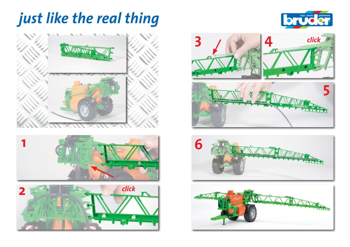 Dankzij de eenvoudige montage kan een beschadigde of versleten spuitboom snel worden vervangen, zodat je Bruder Amazone veldspuit altijd klaar is voor het volgende veld. De spuitboom is volledig compatibel met het Bruder Amazone-spuitmodel, voor een goede pasvorm en probleemloze werking.