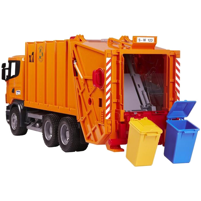 Welke kleine jongen is niet gefascineerd door vuilniswagens? Trakteer uzelf op een geweldig model van de beroemde vuilniswagen, die u zal verrassen met zijn hoogwaardige afwerking en verbazingwekkend leuke functies. Dit model van de Scania auto is geproduceerd in de schaal 1:16, het gebruikte materiaal is hoogwaardig en duurzaam ABS-kunststof. Het biedt veel echte functies, waaronder een volledig functioneel ledigingssysteem dat wordt aangedreven door een uniek mechanisme . Hierdoor zal de kleine vuilnisman genieten van het hele proces, van het laden van het afval, de verwerking tot het storten ervan. Voor maximaal speelplezier wordt de auto geleverd met twee vuilnisbakken.