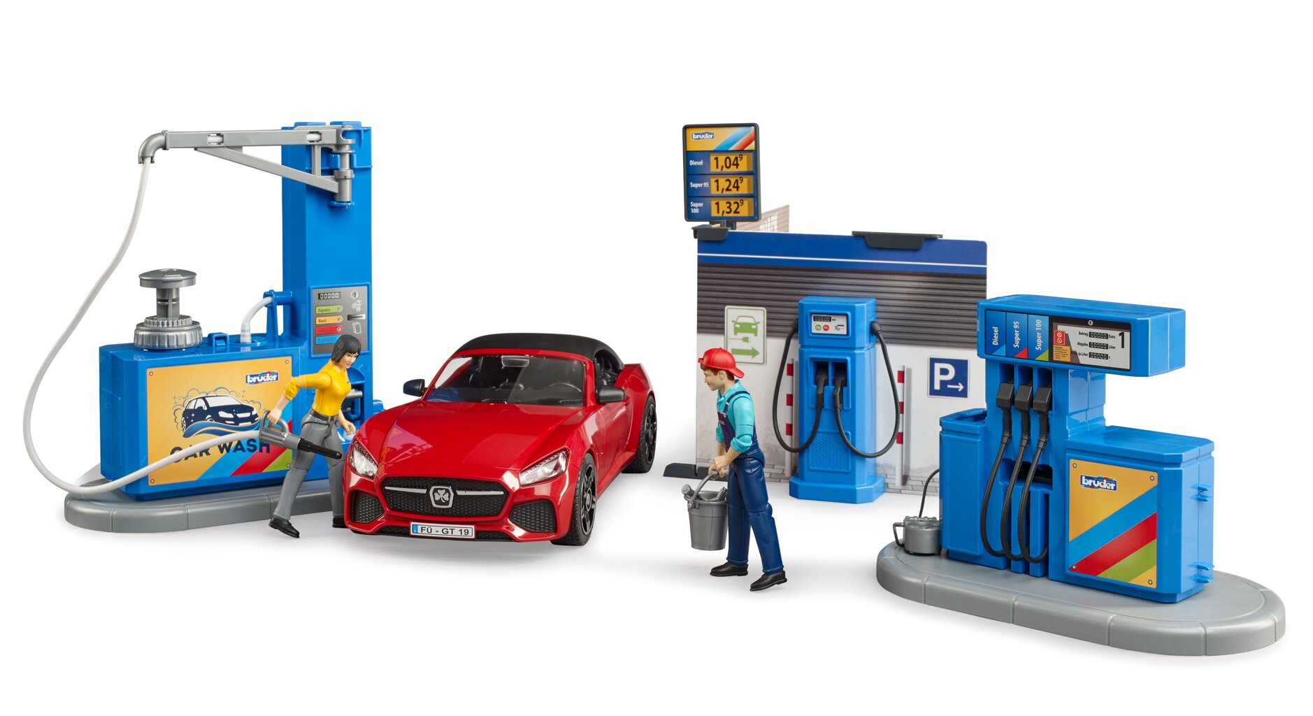 Tankstation met waslijn en auto - Bruder 62111