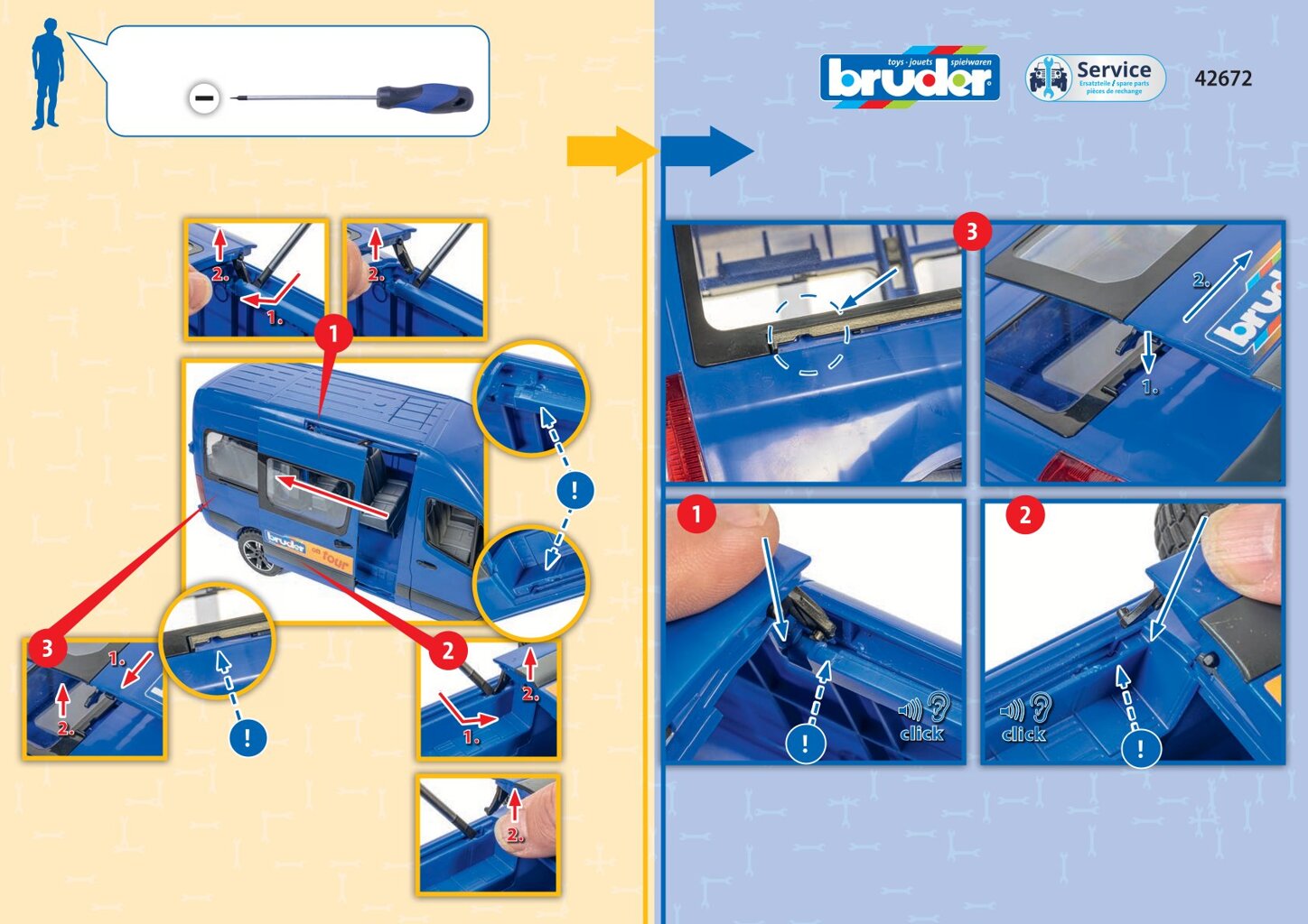 Het originele reserveonderdeel - Bruder 42672 zijschuifdeur is ontworpen voor het Mercedes-Benz Sprinter Bruder model, waar het zorgt voor een authentieke look en de juiste functionaliteit van de zij-ingang van het voertuig. Deze gedetailleerde functie draagt bij aan een realistische spelervaring en biedt gemakkelijke toegang tot de laadruimte van het model.